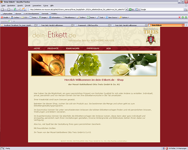Aufgrund der Erfahrungen in der Eigenausstattung von Sekt und Secco wurde ein neues Projekt angestoßen. Mittels modernster Informationstechnologie und einer mitentwickelten Software, ist es jedem Internetnutzer unter www.dein-etikett.de möglich, schon ab nur einer Flasche sein eigenes Etikett, 365 Tage im Jahr, 24 Stunden am Tag, via Internet, farbig und ganz individuell zu gestalten.